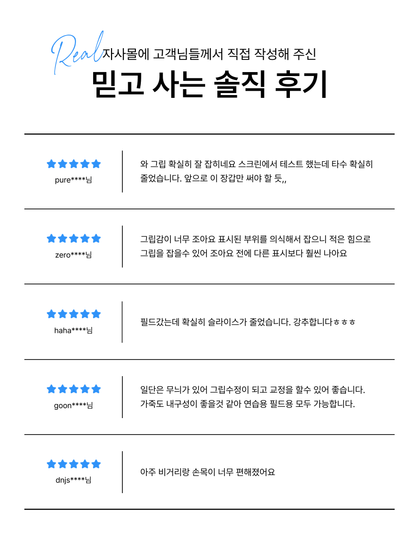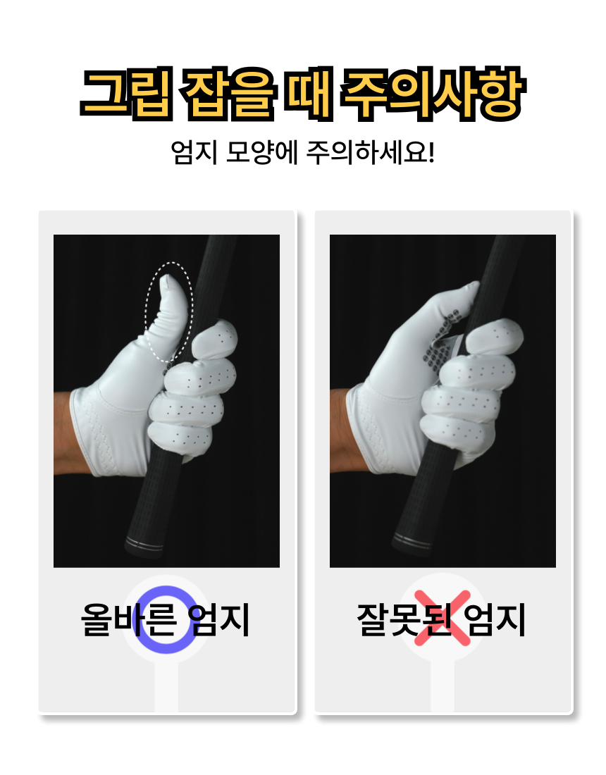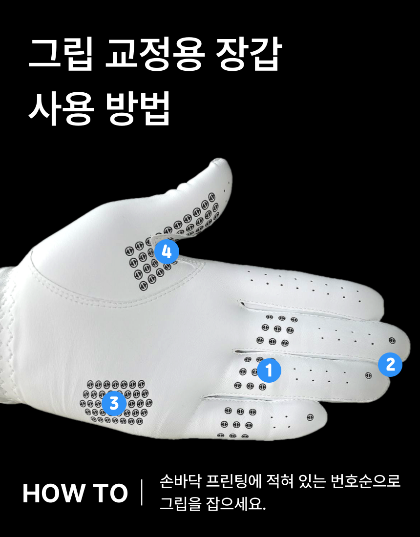 · 상세페이지에 그립 잡는 순서를 참고하여 프린팅 위치별 순서에 따라 모양 그대로 그립을 잡으면 올바른 그립을 구사할 수 있음