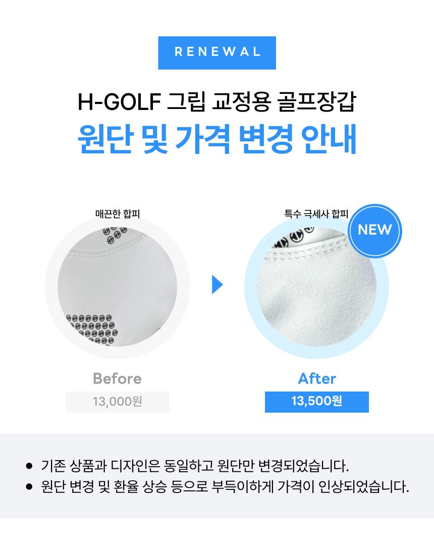 · 원단 변경 및 환율 상승 등으로 부득이하게 가격이 인상되었습니다.